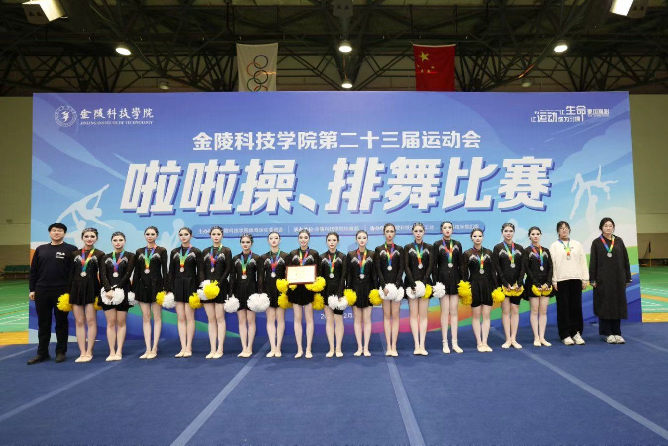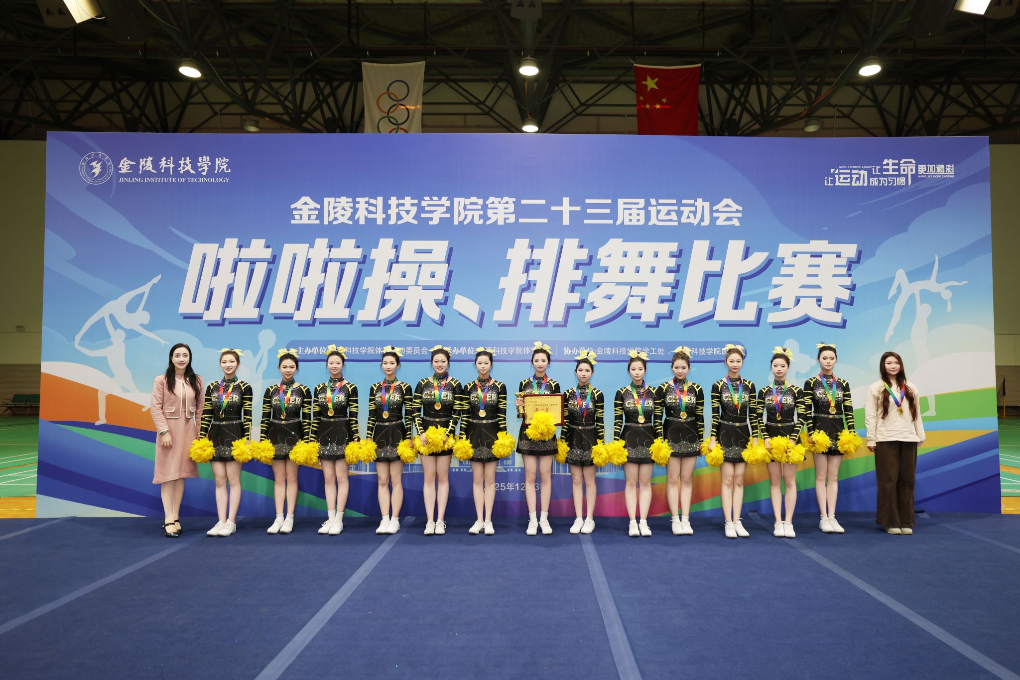 12月3日下午,金陵科技学院第二十三届运动会啦啦操、排舞比赛在江宁校区体育馆二楼圆满落幕。来自18个二级学院的388名运动员参加了此次比赛,参赛规模创历年新高。运动员们用动感花球与律动舞步为全校师生献上了一场力与美交织的视听盛宴。经过3小时激烈角逐,商学院、人文学院、建筑工程学院分获团体总分前三名。