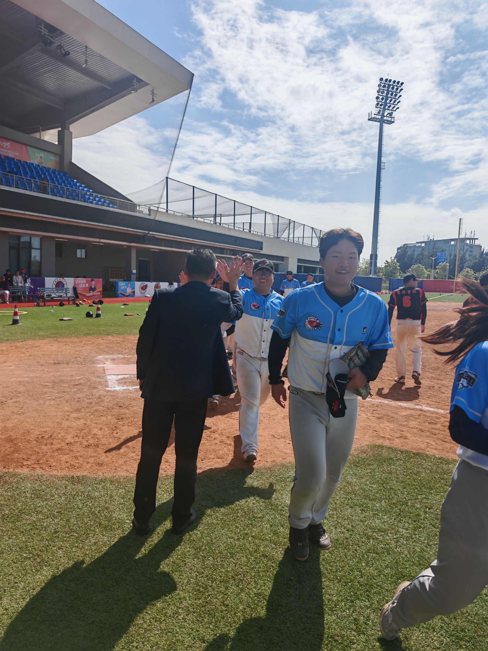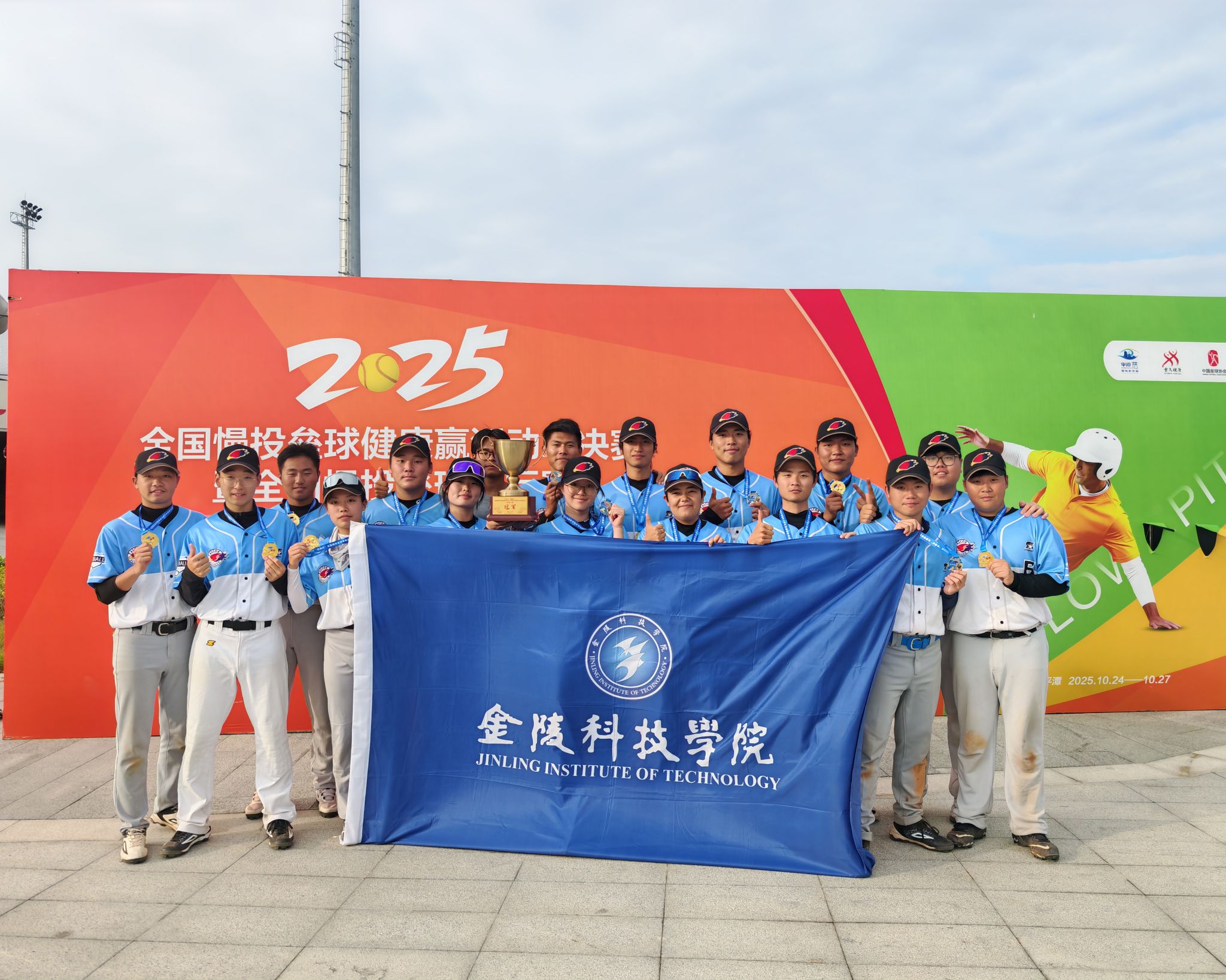 由国家体育总局,中国大学生体育联合会,中国垒球协会联合主办的全国慢投垒球健康赢总决赛暨全国慢投垒球锦标赛于2025年10月24至26日在平潭举办,本次比赛共有来自全国两岸四地二十余支高校队伍参赛,代表了全国大学生慢投垒球比赛的最高水平。我校棒垒球队在领队沈辉副主任,以及朱辰,刘坤两位教练员带领下斩获高校B组冠军。来自机电学院的杨浦同学获得全垒打大赛冠军,来自软件学院的许致铖同学获得高校B组本垒打王称号。