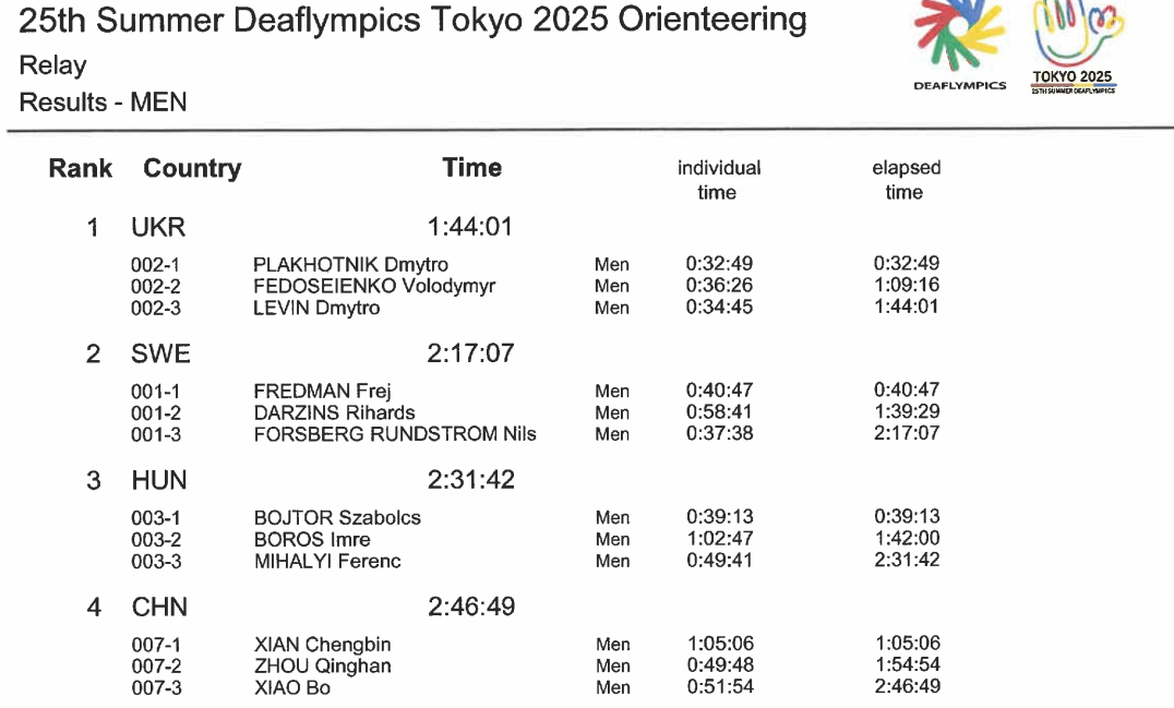 此次赛事意义非凡,这是中国大陆首次组建队伍参加夏季听障奥运会的定向越野比赛,周清汉作为首批登上该项目国际舞台的中国选手,肩负着开拓与突破的使命。比赛中,他全面出击,先后参与短距离、短距离混合接力、中距离以及男子接力赛四个项目的角逐。在男子接力赛项目中,这位曾于2019至2021年在我校体育部罗歆歆老师指导下为校挣得多项国家级省级优异成绩的校友,凭借扎实的基本功与稳定的竞技状态,与队友凝心筑梦,聚力争先,从起跑便全力争先,每一次路线规划都精准果断,每一次交接都默契流畅,最终以出色表现斩获第4名,让世界看到了中国听障定向运动员的坚韧与风采。