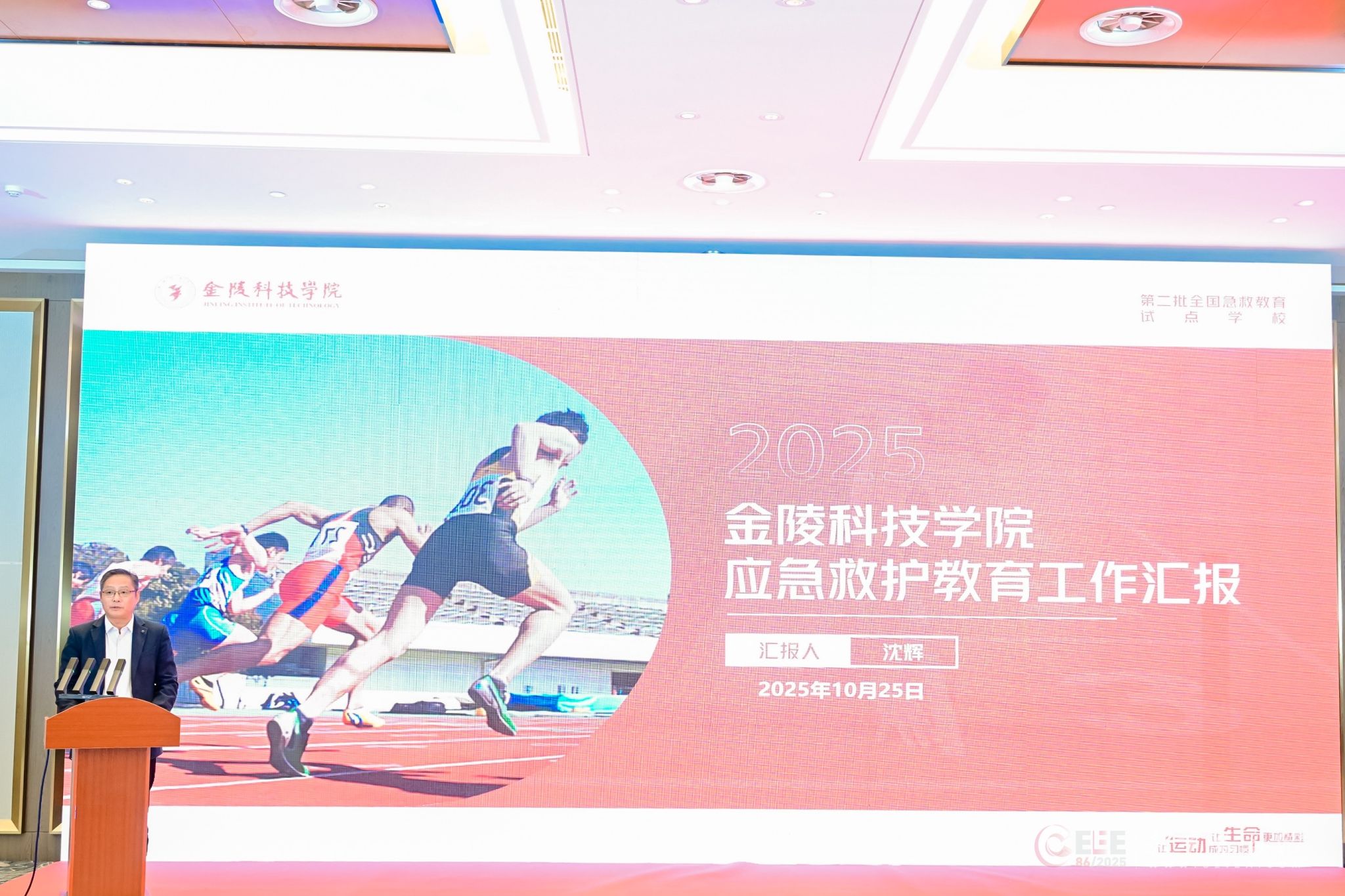 10月25日,由教育部体育卫生与艺术教育司支持、中国教育装备行业协会主办、山东省教育厅承办的全国学校急救教育试点工作交流活动在青岛举行,我校体育部沈辉副主任应邀出席,并就我校急救教育的经验和做法作交流发言,得到与会同志的高度肯定。